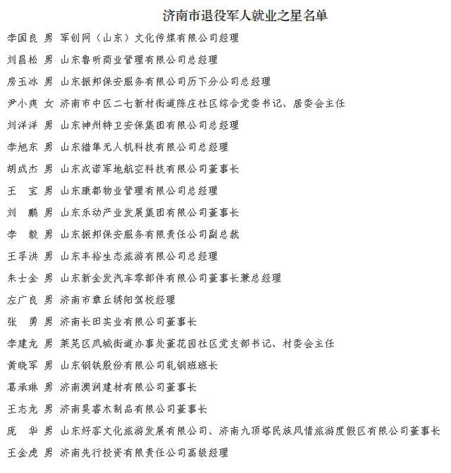 擬確定李國良等20名同志為濟南市退役軍人就業(yè)之星