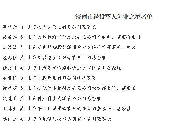 裴樹清等10名同志為濟南市退役軍人創(chuàng)業(yè)之星